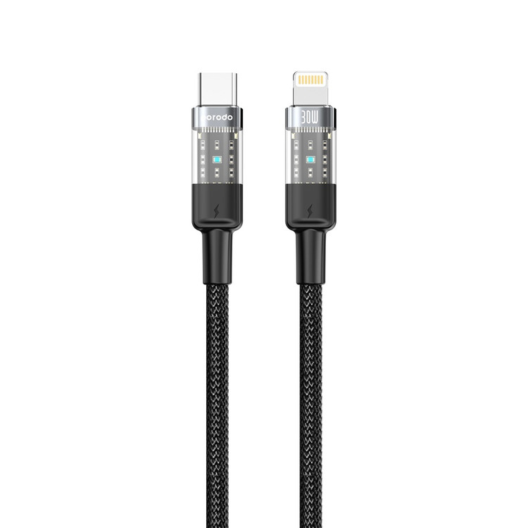 شارژ سریع را با کابل بافته شده Porodo با اتصال شفاف USB-C به لایتنینگ تجربه کنید